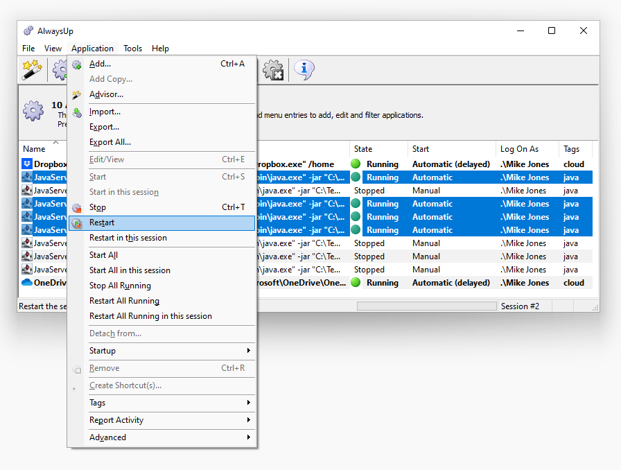 AlwaysUp ensures applications run securely under specific user accounts or service credentials, minimizing security risks and unauthorized access.’